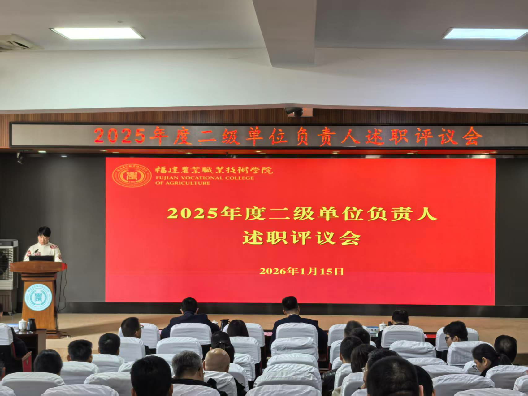 1月15日下午,我院在闽台楼学术报告厅召开2025年度二级部门负责人考核评议会。学院领导,中层干部及教师代表参加会议。会议由吴华副院长主持。