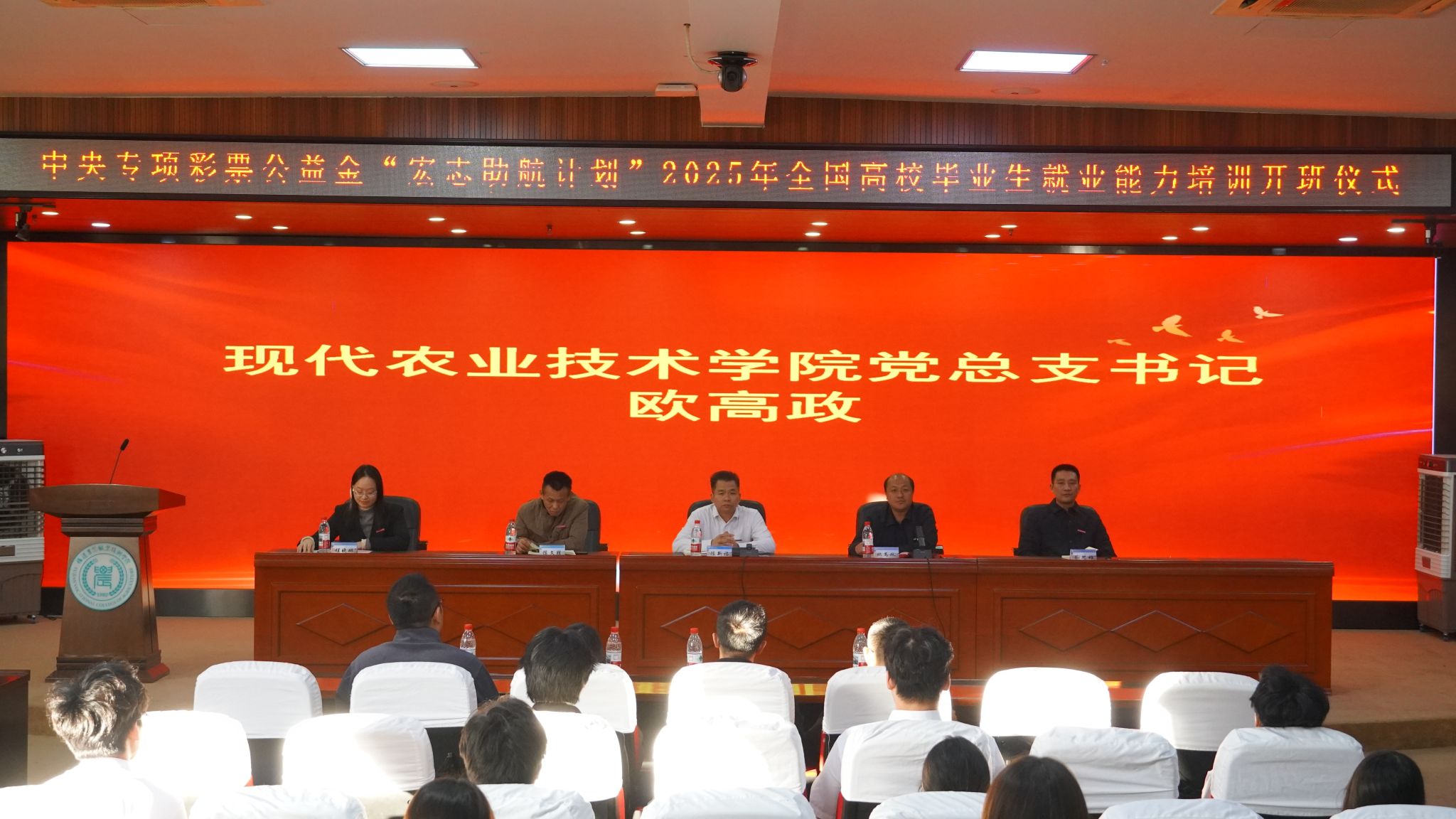 11月21日,福建农业职业技术学院2025年“宏志助航计划”全国高校毕业生就业能力培训班在闽台楼学术报告厅正式开班。学校党委委员、组织部部长陈新福、现代农业技术学院党总支书记欧高政、现代农业技术学院院长陈文胜、学生工作部蔡思雄、各二级学院党总支副书记及全体参训学员参加开班仪式,现代农业技术学院程晓琳老师主持会议。