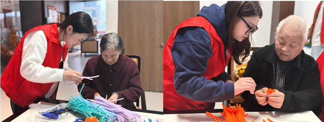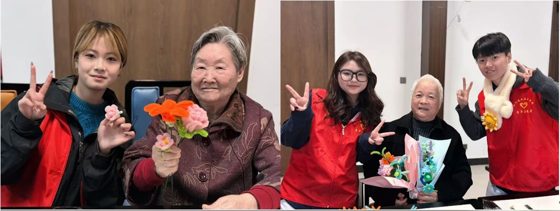 实践课堂不止于校园,更延伸至社区。青马学员们带着热情与笑容走进静馨敬老院,开展“冬至暖阳,指尖生花”志愿服务活动。陪爷爷奶奶聊天、表演文艺节目、教做简单手工、送上手写祝福卡……一个个青春身影,成为冬日里最暖的“一抹亮色”。在真诚的互动中,学员们将敬老爱老的传统美德融入志愿服务的温暖行动,在服务中感受温情,在奉献中收获成长,切实增强了学员们的社会责任感与使命担当。