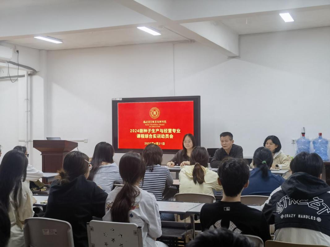 4月21日下午,现代农业技术学院组织召开2024级种子生产与经营专业课程综合实训动员大会,扎实推进产教融合人才培养,强化学生实践能力。学院院长陈文胜、副院长陈丰、党总支委员程晓琳出席会议,全体2024级种子生产与经营专业学生参会。