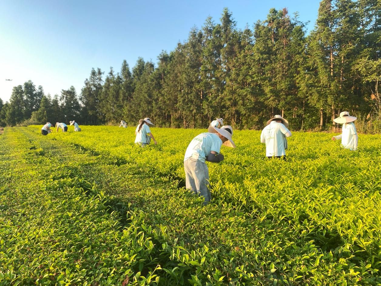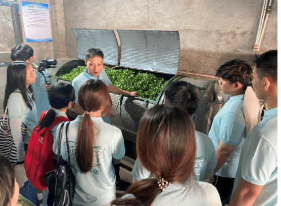授牌仪式结束后,光能负责人黄光能带领实践团参观了光能生态茶园加工厂,认真学习杀青、揉捻、烘焙等茶叶加工流程,见证茶叶在文火慢焙中释放醇厚香气,感受现代农业技艺的创新与智慧。随后,实践团来到光能生态茶园,化身“茶农”,在茶垄间学习“二叶一芽”采摘标准。并就茶园种植环境、现代化加工流程、品牌打造及市场销售模式与茶场负责人进行深入交流,探讨“宁化红”如何赋能农业生态发展。实践团同学纷纷表示,“以前觉得农业就是‘面朝黄土背朝天’,现在发现科技赋能后,农业这么酷!”这次实践让他们对科技赋能农业农村发展有了比较直观的认识,坚定了他们学好现代农业知识,返乡助力乡村振兴的信念。
