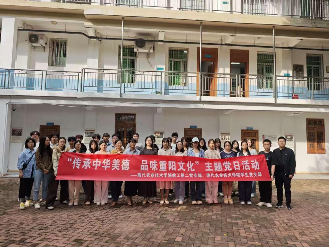 尊老敬老是中华民族的传统美德。为丰富党员的精神文化生活,深刻感悟重阳节的文化内涵与时代价值,2025年10月29日至10月31日,现代农业技术学院教工第二党支部与学生党支部联合组织开展了以“传承中华美德·品味重阳文化”为主题的党日活动。本次活动内容充实、形式新颖,将理论学习、文化传承与实践创新紧密结合,取得了显著成效。
