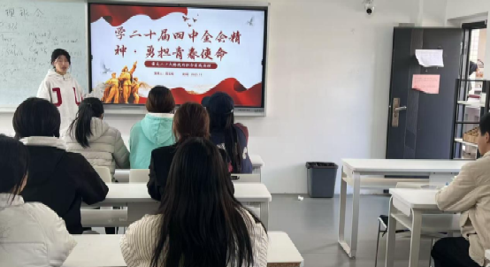 深学全会精神,勇担青年使命。为深入学习贯彻党的二十届四中全会精神,引导团员青年将个人理想融入国家发展大局,我院团委指导各团支部深入开展“学习全会精神 勇担青春使命”主题团日活动,全体团员青年在理论学习中坚定信念,在思想碰撞中明确担当。