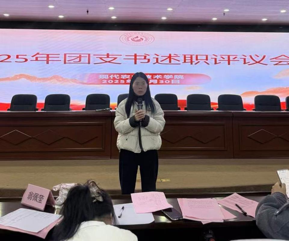 凝心聚力展作为,锚定征程再出发。近日,现代农业技术学院团委组织召开2025年度团支书述职评议会。学院团委书记吕焕老师、辅导员代表、团学骨干、各支部团支书及委员共同参会。会议围绕2025年度团支部工作进行全面复盘与集中展示,旨在总结经验、凝聚智慧,为下一阶段团建工作提质增效、更好服务青年成长汇聚思想共识与行动合力。