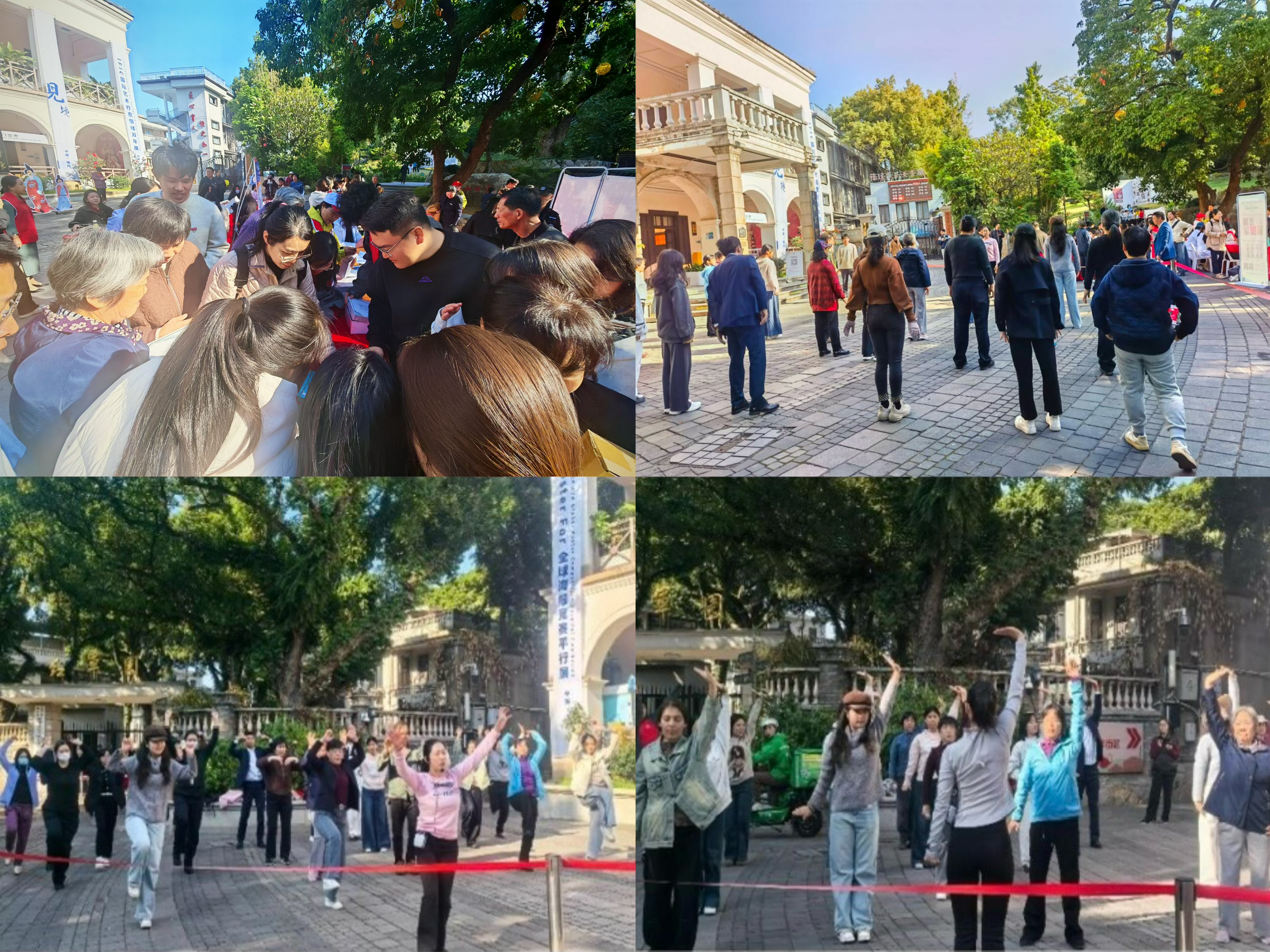 12月5日上午,仓前街道“志愿同行・温暖邻里”主题公益活动在烟台山乐群楼广场举行。该活动由街道党工委、办事处及新时代文明实践所主办,综合文化站承办,福建农业职业技术学院公共教学部党支部等十余家单位联合协办。作为唯一高校协办单位,公共教学部党支部发挥专业优势,组织教师党员志愿者开展五禽戏、八段锦现场教学,以实际行动助力健康社区建设。