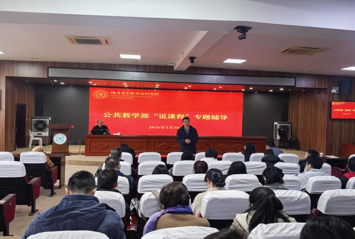 为助力教师提升教学能力、精进“说课程”规范以契合职教改革要求,2026年1月30日上午,公共教学部在闽台楼二楼学术报告厅举办教师“说课程”专题培训,特邀吴礼光教授主讲,全体教师踊跃参与。