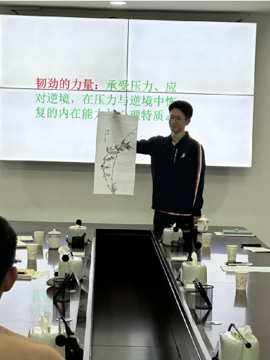 各运动队代表也相继发言。田径队代表甘雨玲同学用真挚的语言分享了自己的备赛感受:“训练的过程虽然辛苦,但每当想到能代表学校参加比赛,心中就充满了动力。”她表示,全体队员将牢记副院长的嘱托,以“韧劲”为支撑,在赛场上全力以赴、奋勇争先,无论是面对强劲的对手,还是突发的状况,都将保持冷静、顽强拼搏,用实际行动诠释体育精神。随后,羽毛球队优秀运动员王炳文展示了侯志宏副院长分享的劲竹图,表示运动应如图中劲竹,强风中坚韧,挫折中不挠。