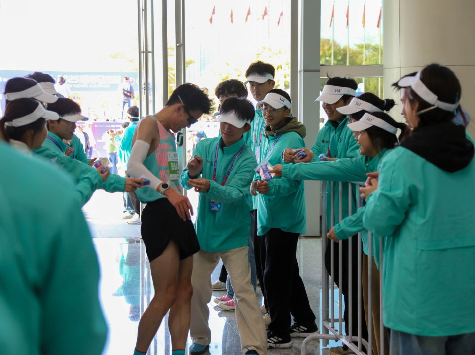 呐喊如潮,热情似火。在马拉松的终点处,志愿者们以小组为列,为每一位抵达的跑者挂上奖牌、送上掌声。“太棒了”“恭喜完赛”呐喊声此起彼伏,一张张热情洋溢的笑脸、一声声铿锵有力的助威,让运动员们感受到福州满满暖意,展现了我校志愿者们的蓬勃朝气。