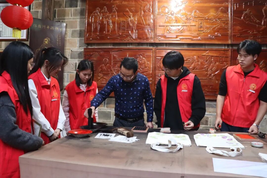 活动尾声,学子们来到建本文化体验馆,沉浸式体验建本雕版印刷技艺。覆纸、轻压、揭起,一张张带着墨香的“福”字跃然纸上。