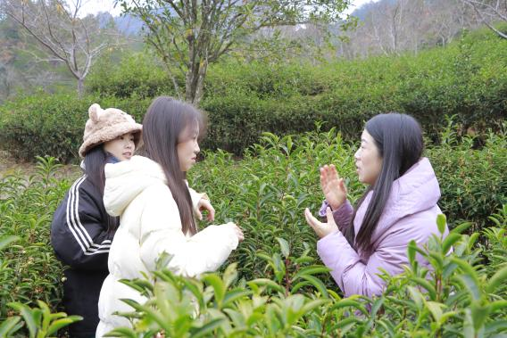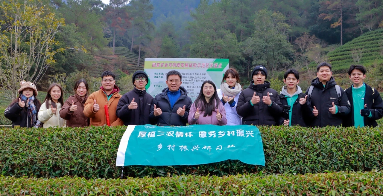 践行生态文明思想,深耕茶产业振兴之路。实践队循着习近平总书记考察武夷山燕子窠生态茶园的足迹,将思政课堂从校园延伸至田间地头,实现理论学习与实践探索的深度融合。在燕子窠生态茶园示范基地,省级技能大师吴素青为队员们详细讲解,回顾习近平总书记在福建工作期间推动茶产业高质量发展的相关历程,深入解读科技特派员如何以茶科技激活武夷万重茶山,如何立足地方资源优势、持续推进技术创新,统筹做好茶文化、茶产业、茶科技“三茶”融合大文章,真正把论文写在祖国的田野大地上。