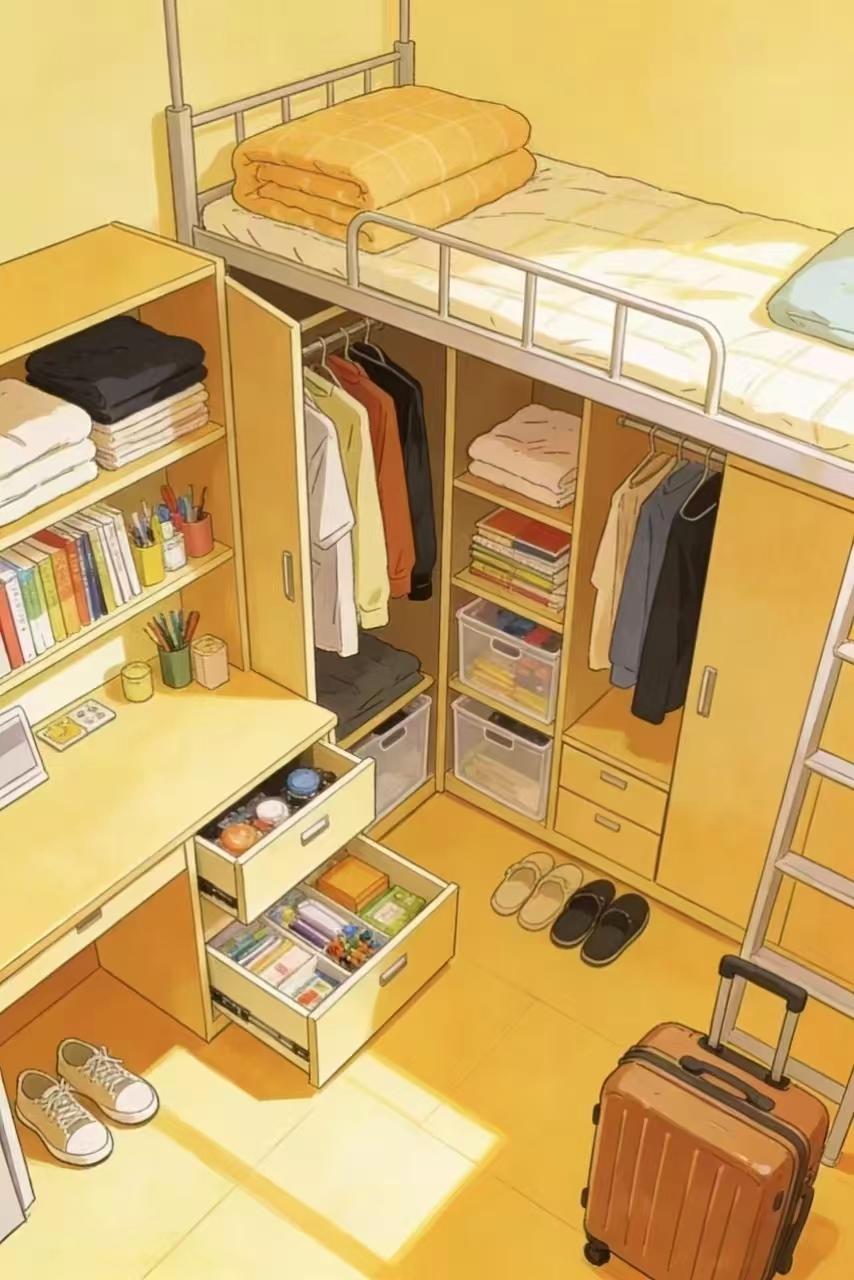 合理收纳、规范摆放个人物品,既能让宿舍更整洁有序,也能避免物品丢失、损坏,提升空间利用率,让“小家”更显温馨:
