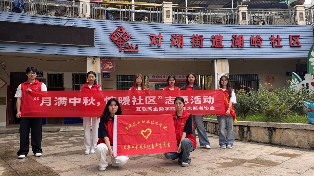 为践行志愿服务精神,9月24日-25日,互联网金融学院团总支组织团员青年走进湖岭社区开展“月满中秋,情暖社区”大学生进社区实践志愿服务活动,以实际行动为社区居民送去节日的问候与青春的温暖。活动期间,志愿者分为2组有序展开服务。一支小分队带着精心准备的月饼礼盒,走进社区高龄、独居老人的家中。他们不仅送上了饱含情意的节日祝福,更主动拿起清洁工具,帮助老人打扫房间、整理杂物,将实实在在的关怀与温暖送到了老人身边,...