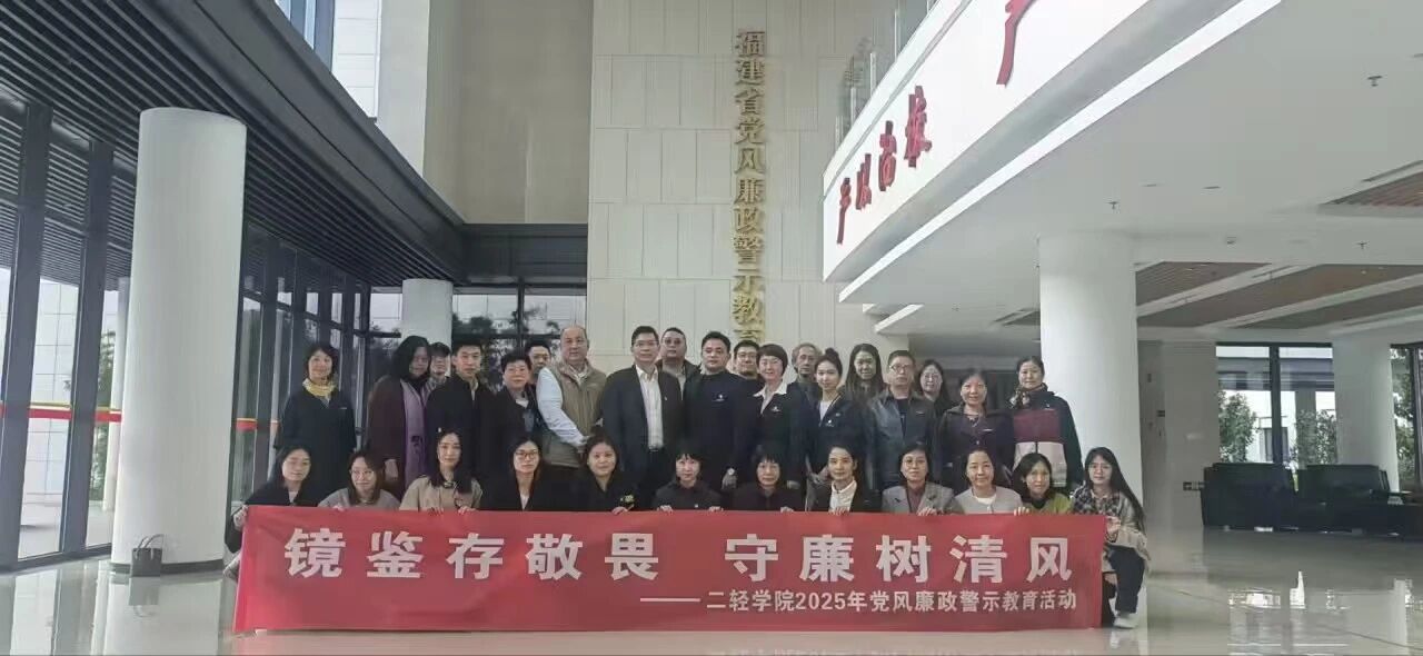 为深入学习贯彻习近平新时代中国特色社会主义思想,加强学院党风廉政建设,筑牢教职工拒腐防变的思想根基,11月19日下午,原福建第二轻工业学校党委书记、二轻学院联系领导林俊标,与二轻学院全体教职工前往福建省党风廉政警示教育馆参观学习。在讲解员的引导下,教职工参观了“全面从严治党是一场自我革命”“持续巩固发展良好的政治生态”等五大主题展区,通过现场观摩与聆听讲解,深入理解了全面从严治党、党风廉政建设和反腐败斗争的重大意义、...
