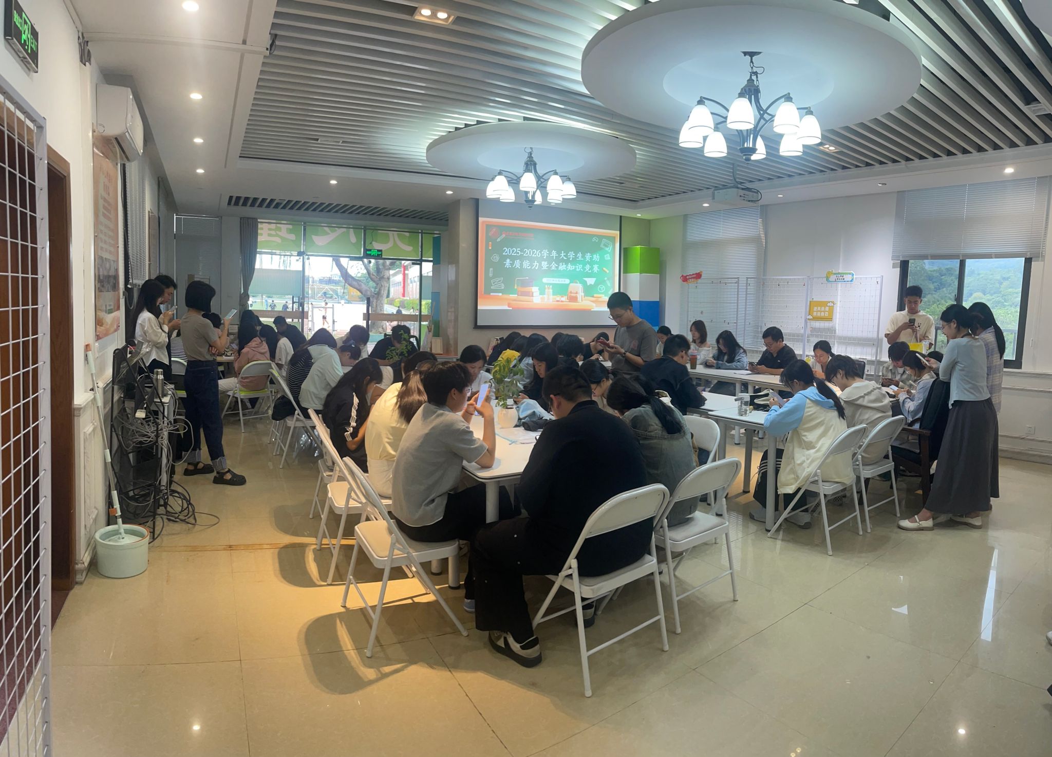 2025年10月20日“学生资助素质能力暨金融知识竞赛”在我院创新楼205心理驿站顺利举办,来自8个学院的50余名师生齐聚赛场,以赛竞技、以学赋能,上演了一场精彩的知识比拼。本次竞赛依托“学习通”APP搭建线上答题平台,试题聚焦资助政策解读、征信诚信建设、金融安全防护及消费者权益保护等核心板块,通过单选、多选、判断三种题型,全方位多层次考查参赛师生的知识储备与应用能力。赛场之上,秩序井然,参赛学生凝神聚力、审慎作答,...
