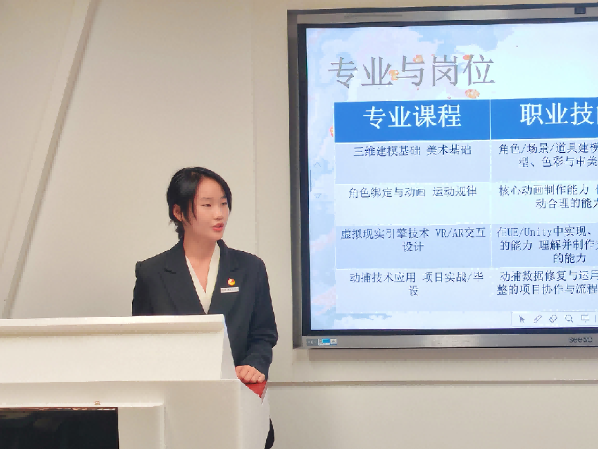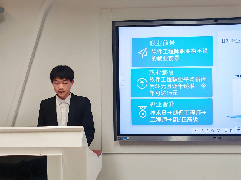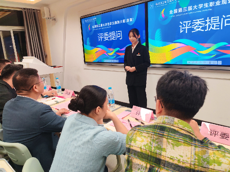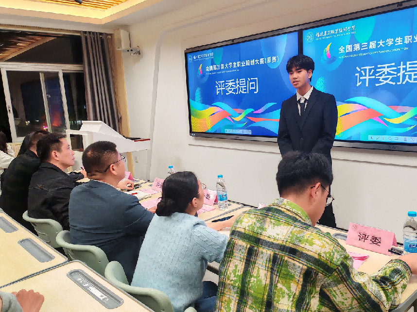 选拔赛分为班赛、系初赛和决赛三个阶段,共14名选手从初赛中脱颖而出进入决赛。比赛环节采用“PPT路演+评委提问互动”形式,14位参赛选手围绕职业理想、自我认知、职业环境分析、职业定位、目标路径设计、规划蓝图等核心内容展开展示。现场答辩环节中,评委们全面考察各位选手的生涯规划能力、职业匹配度、专业素养和综合能力。选手现场回答问题,进行答辩。经过PPT路演、现场答辩环节。