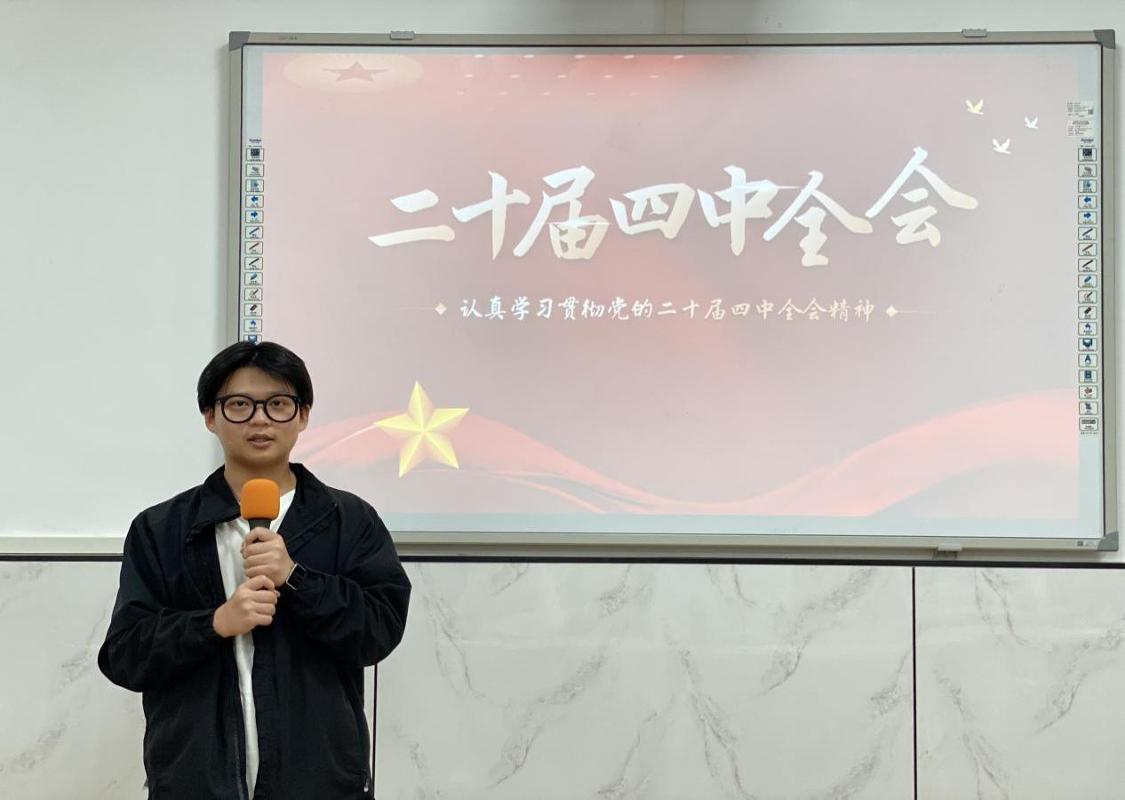 会议伊始,李岚清同学首先作领学发言,他系统梳理了党的二十届四中全会的重大意义、核心要义与战略部署,重点解读了全会中关于发展新质生产力、建设教育强国、科技强国、人才强国等与信息学子专业领域密切相关的重大论断。他表示,作为信息工程学院的学生干部,身处科技发展的前沿领域,更应率先学深悟透全会精神,将国家发展的大局与个人学习的细节、未来职业的规划紧密结合起来。