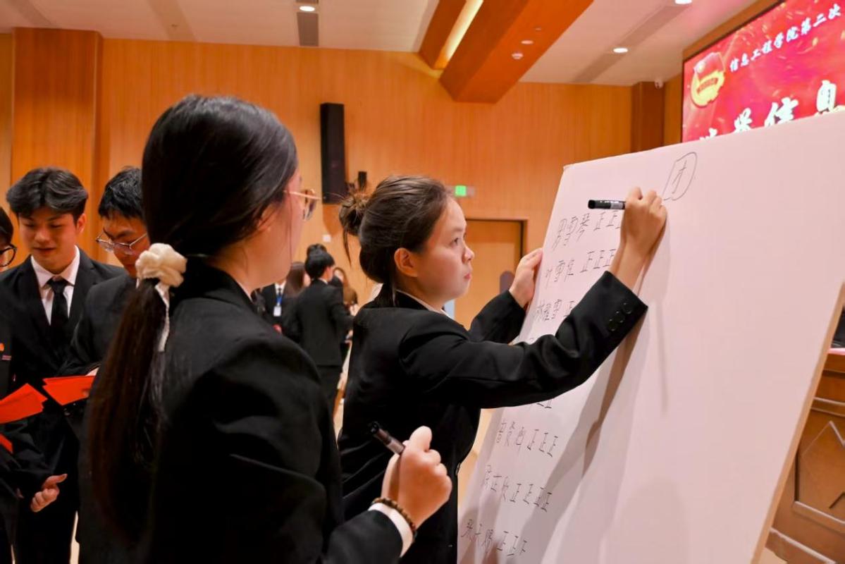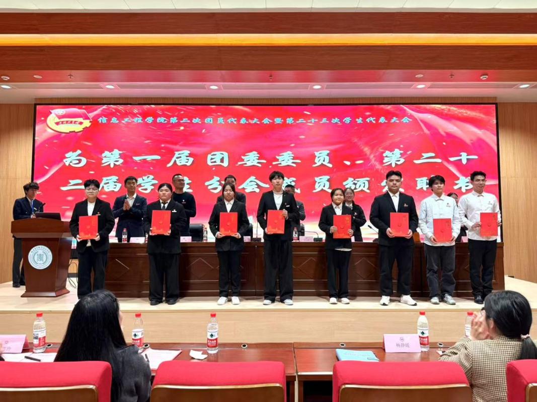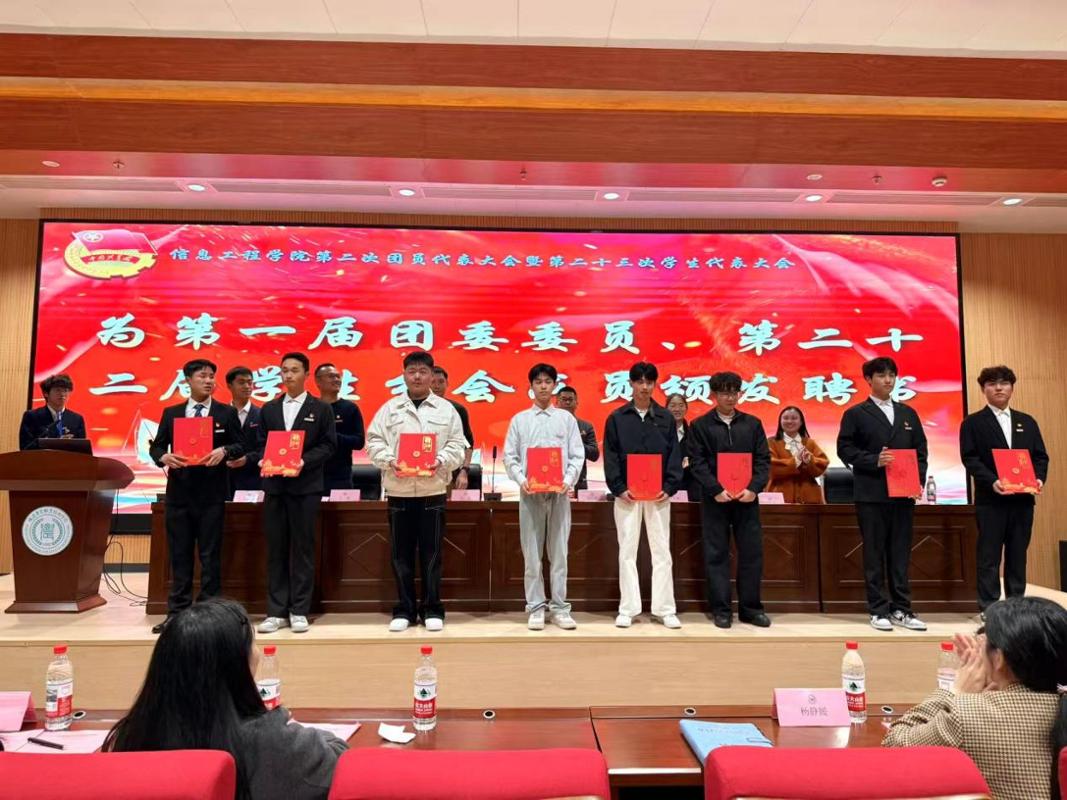 共青团信息工程学院第一届委员会代表许永辉、信息工程学院第二十二届学生分会代表江忠竑在会议上作了工作报告,报告回顾和总结了我院团学组织与学生会开展的各项工作和取得的优异成绩,明确了下一阶段的工作目标和任务。最后,大会选举产生第二届团委委员和第二十三届学生分会主席团成员,并为上一届学生干部颁发了聘书。
