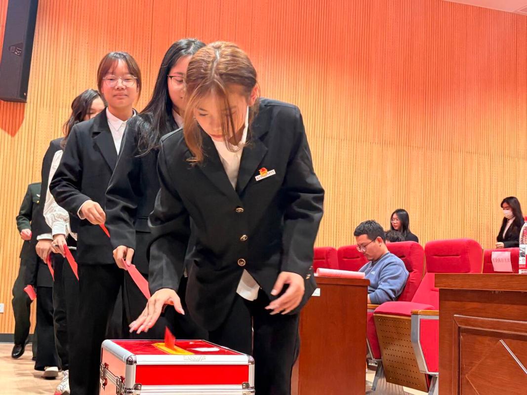 大会在庄严肃穆的国歌中拉开帷幕,赵楠副书记为大会致开幕词。校团委张溪辉老师对大会的召开表示热烈的祝贺,对我院2025年的共青团工作表示认可,并提出了坚定理想信念、勇担责任使命,敢于创新、引领时代潮流的殷切嘱托。随后,学生工作部部长陈剑波老师发表讲话,讲话中对我院团学工作取得的成绩予以充分肯定,并提出三点希望:一是希望我院团学组织再接再厉、继续深化改革,二是身有所正、夯实政治根基,三是砥砺本领、致力于全面发展。