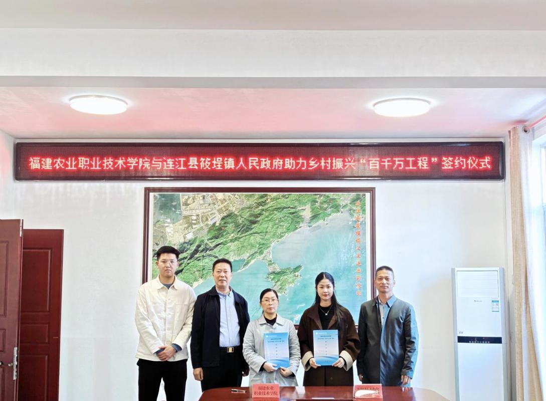 2025年12月4日,信息工程学院与连江县筱埕镇人民政府乡村振兴“百千万工程”战略合作签约仪式在筱埕镇举行。信息工程学院副院长吴瑾、校友会常务副秘书长陈克银携青年教师郭子诚出席活动,筱埕镇党委书记邱宏鑫、副镇长陈云菲及镇相关部门负责人参会,共同见证协议签署。