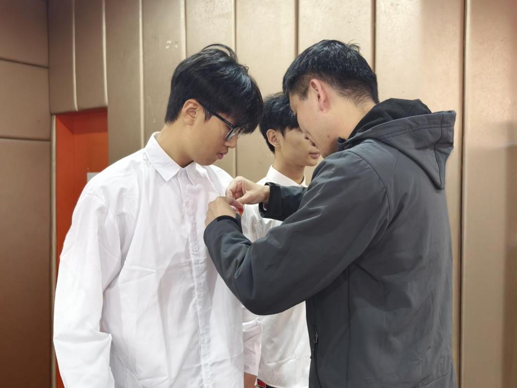 (信息工程学院党总支副书记赵楠老师为新团员代表佩戴团徽)