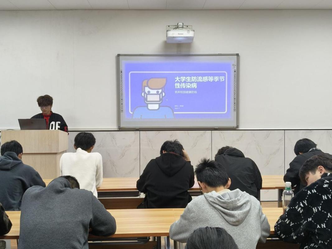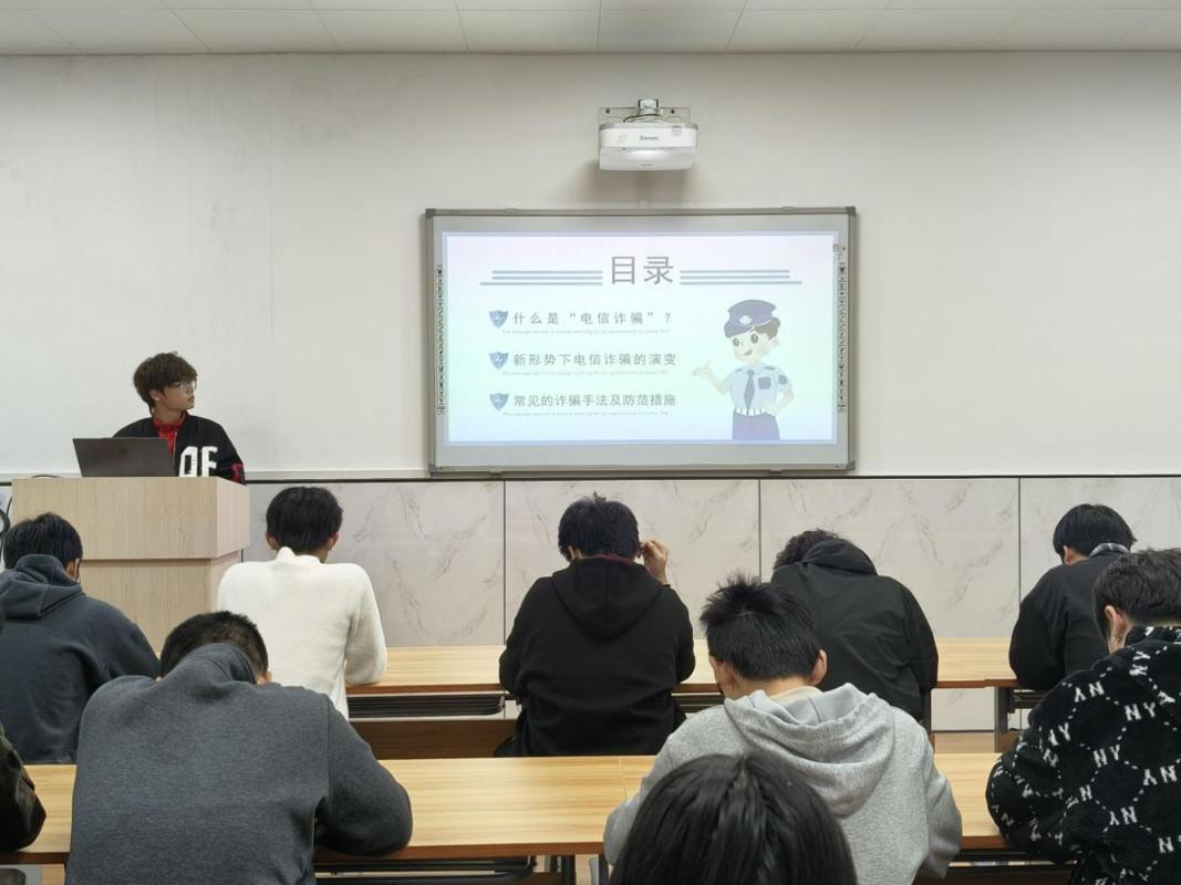 班会内容,覆盖面广。在消防安全教育环节,副班长系统讲解了火灾的成因、宿舍的常见隐患,普及了火灾应急处理与疏散逃生的关键要领。反诈教育环节,副班长则结合校园典型案例,深入浅出地剖析了刷单返利、冒充客服等常见诈骗手法,强调了“不轻信、不转账、不透露”的防骗原则。此外,班会还科学普及了流感、诺如病毒等常见传染病的传播途径、典型症状及日常防护措施,引导学生养成良好的卫生习惯。