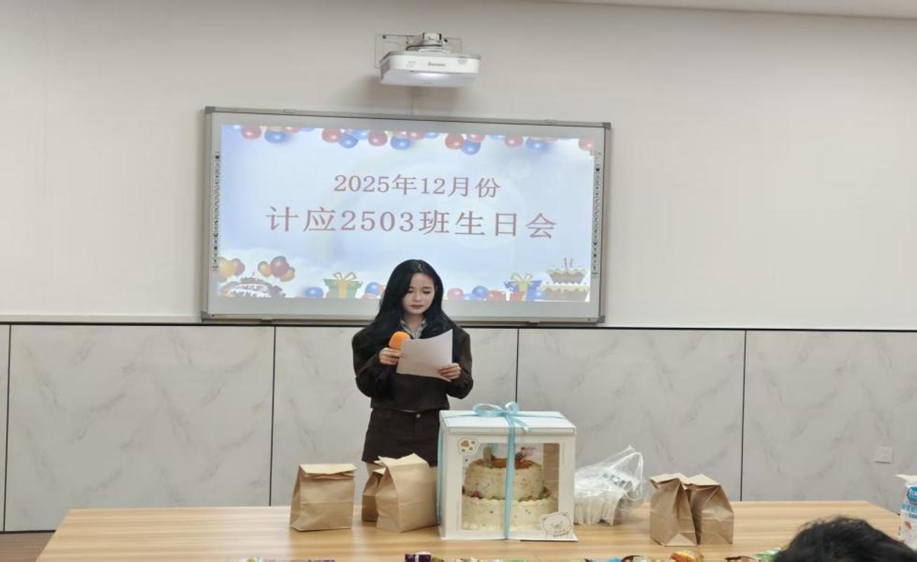 12月26日晚,计算机应用技术2503班“同窗共庆生,温暖伴前行”团建活动在学生社区观南会议室正式开始。辅导员与班级全体同学共同参与活动。