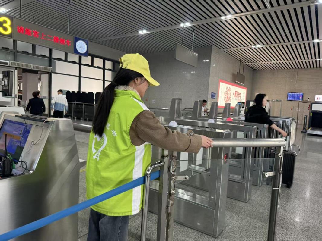 活动当天,计网2401班全体团员统一着装、精神饱满、列队整齐,在火车站工作人员与团支书的统一安排下,快速完成岗前培训与任务分工。大家明确岗位职责、熟悉服务流程,以认真严谨的态度投入到志愿服务中。在火车站候车大厅、售票窗口、进出站口、扶梯旁等关键点位,志愿者们各司其职、协同配合,用耐心与细心为旅客提供全方位服务。志愿服务过程中,大家不怕烦琐、不畏辛劳,主动坚守岗位,以昂扬向上的精神面貌和踏实负责的工作作风,展现出新时代大学生团员的良好素养与责任担当。