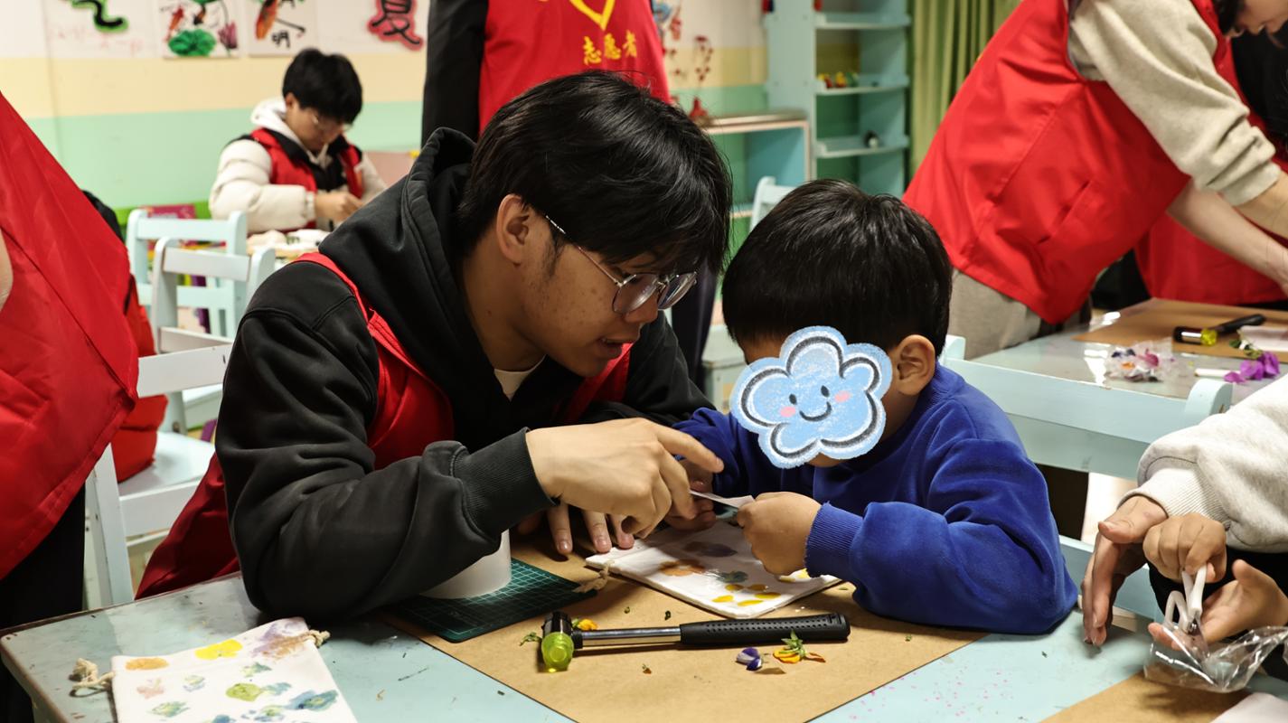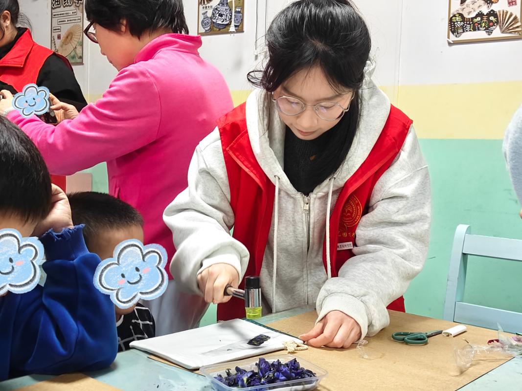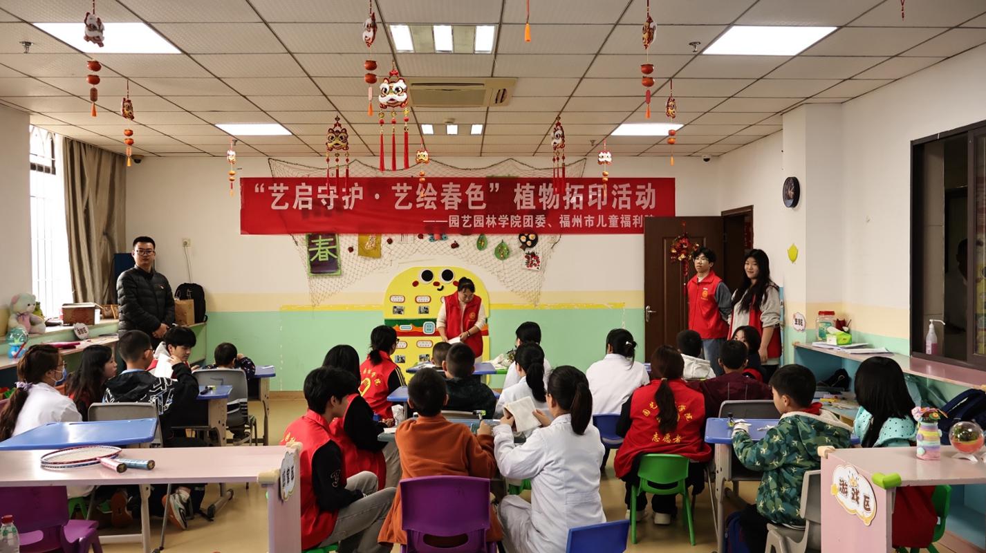 3月24日,园艺园林学院团委组织园小艺志愿服务队、园艺疗法手工坊社团共20余名师生,走进福州市儿童福利院,开展了一场以“艺启守护·艺绘春色”为主题的植物拓印疗愈活动。以园艺疗法为纽带,用自然之美温暖童心,为孩子们带来一场充满绿意与创意的疗愈体验。