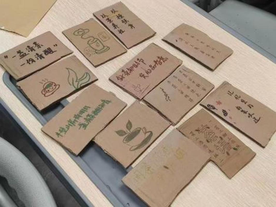各支部还注重将文化传承与专业实践相结合。同学们通过案例分析、成果展示等形式,畅谈如何将文化自信融入专业学习。其中,25级茶艺与茶文化支部的团员们精心设计了主题明信片活动。他们围坐在一起,用画笔勾勒出茶文化等传统元素,并将学习感悟融入艺术创作,以“一盏清茶,一份清醒”等语句表达对习近平文化思想的体会,让抽象的理论知识变得生动具体。