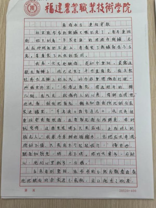 此次 “重阳敬长辈,美德永传承” 主题征文活动,是园艺园林学院弘扬中华优秀传统文化、推进德育工作的生动实践。通过文字的力量,不仅唤醒了学生对传统节日的重视,更让“敬老爱老”的种子在校园扎根,为推动中华优秀传统文化的当代传承注入了青春动能,引导学生们在践行传统美德中涵养品格、成长成才。