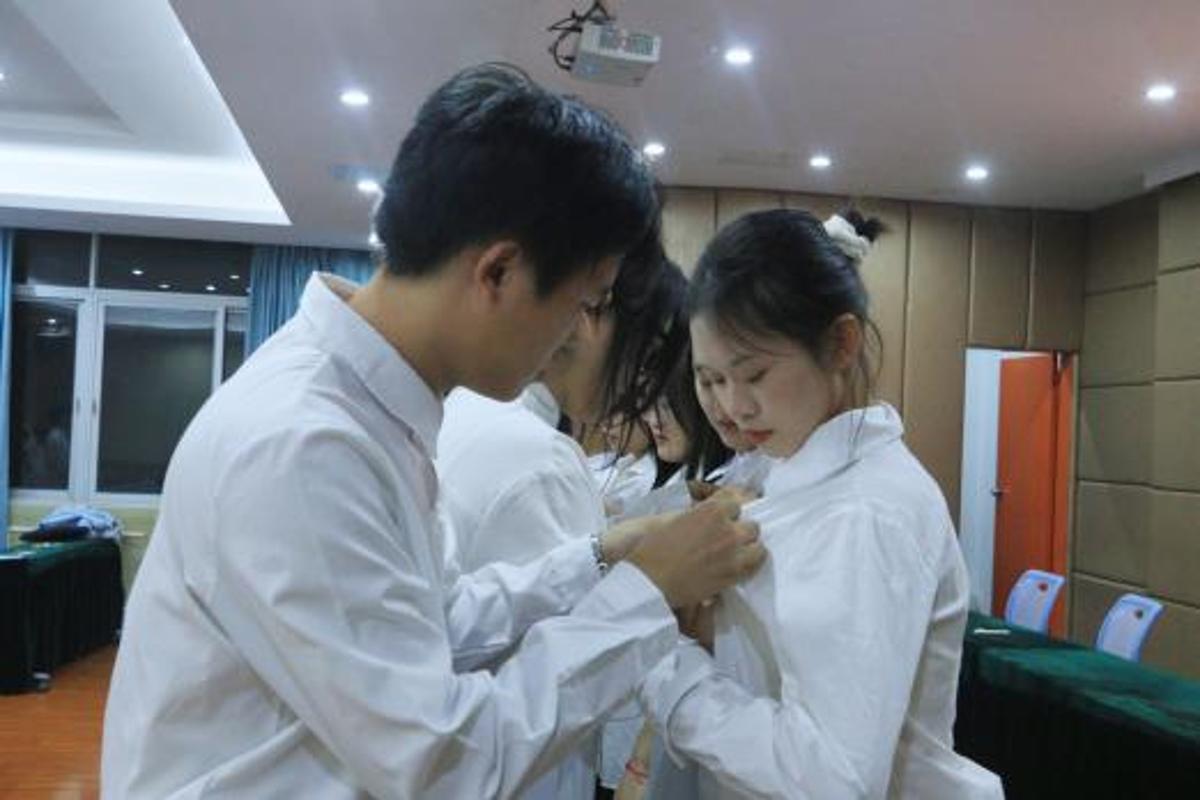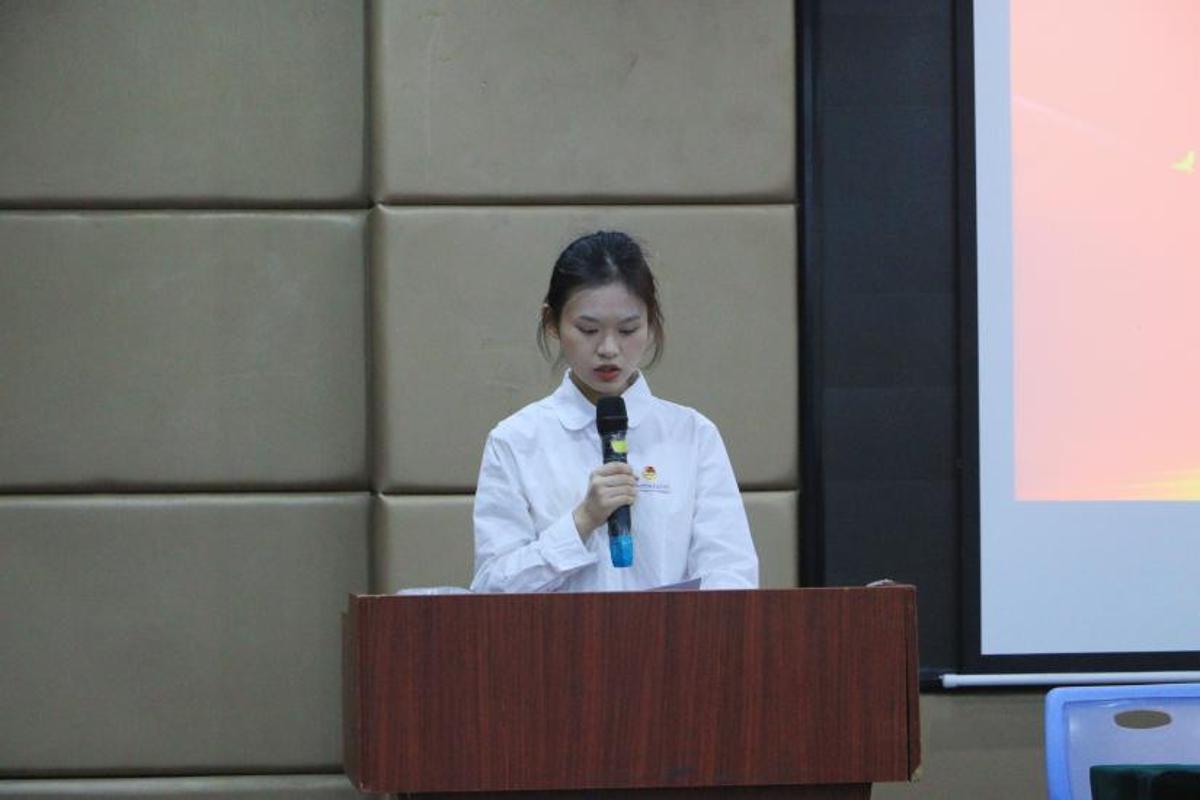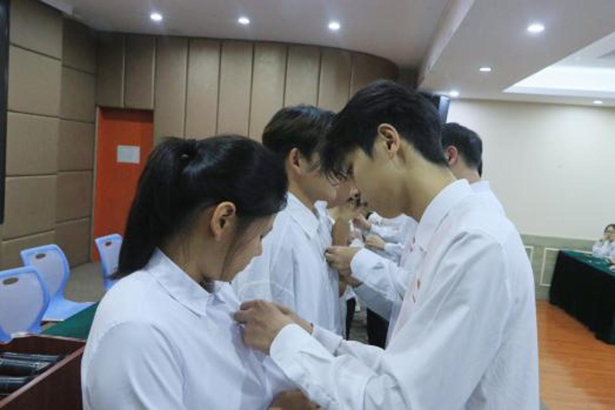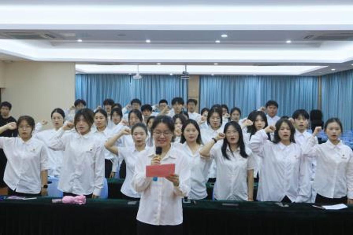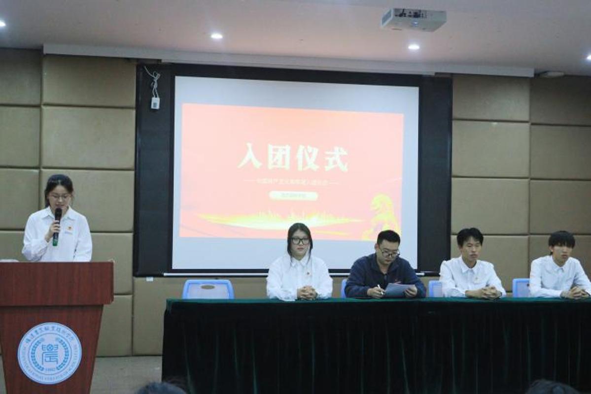 林雨龙老师郑重宣读了50名新团员名单。随后,优秀团员代表们上前将熠熠生辉的团徽佩戴在新团员的胸前。那一刻,团徽与灼灼目光交相辉映,信仰与荣光在眸中流转。自此,他们的人生脉搏将与新时代同频,以青春奋斗追随党的旗帜,谱写壮丽篇章。