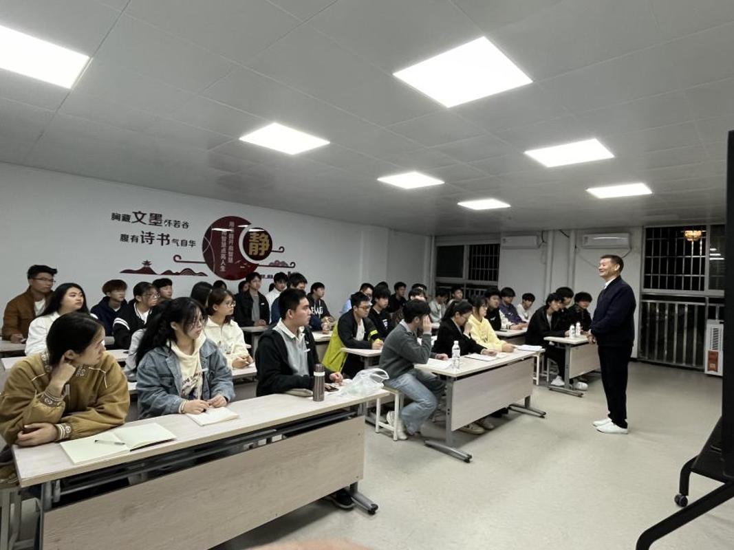2025年11月23日晚,为深化“一站式”学生社区综合育人功能,推动思想政治教育与社区治理深度融合,学院纪委书记陈坛春走进“爱农”学生社区知行耕读堂内,以“建设更高水平的平安中国”为主题,为设施农业与装备2501班全体同学讲授专题思政课,引导学生深刻领悟国家安全与社会稳定的战略意义,厚植责任担当与使命情怀。