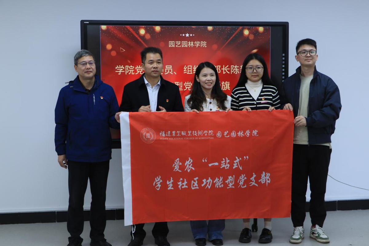 (为爱农“一站式”学生社区功能型党支部授旗)