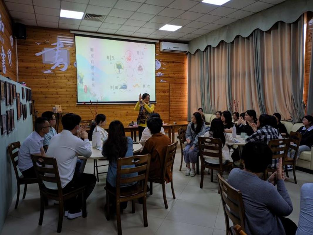 在专业知识分享中,王芳老师以桌面精油、知识卡、手工制品等教具为载体,系统讲解植物精油的来源、特性、安全使用原则及多维健康养护方法,详细介绍精油蒸馏、冷压两种核心萃取方式,拆解 “三性四能五高” 核心特性,强调纯正、安全、有效三大使用原则,并科普野橘、椒样薄荷、尤加利、永久花、川芎等多款精油的实用功效,其中柑橘类精油护肝调情绪、被称作 “瓶子里的阳光”,薄荷精油提神醒脑、助力高压人群舒缓放松,贴合职场与日常健康需求,同时结合节气养生、经络反射原理,分享顺应自然节律的身心调节方法。
